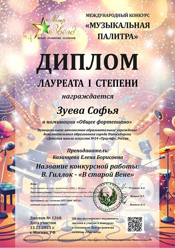Зуева Софья – Диплом лауреата I степени