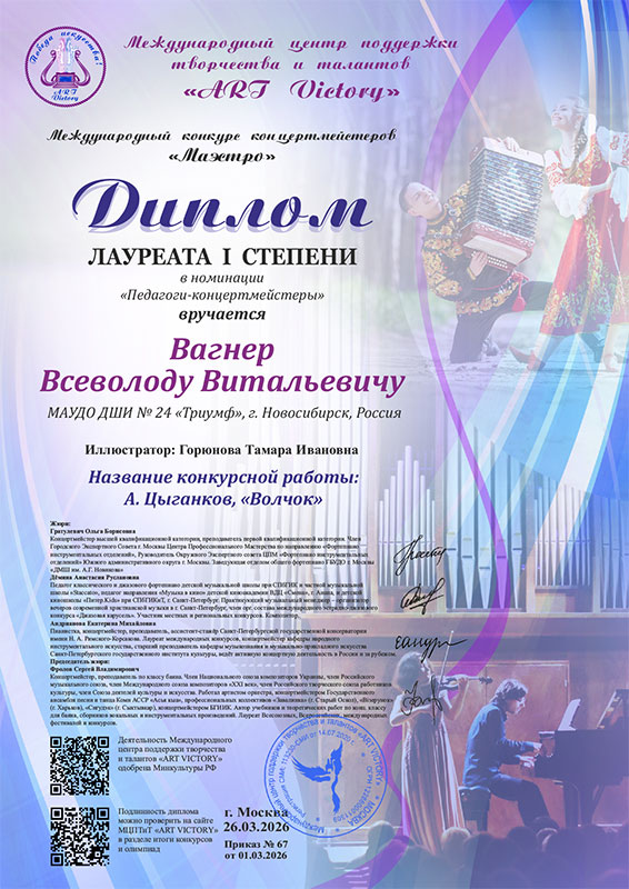 Вагнер Всеволод Витальевич – Диплом лауреата I степени