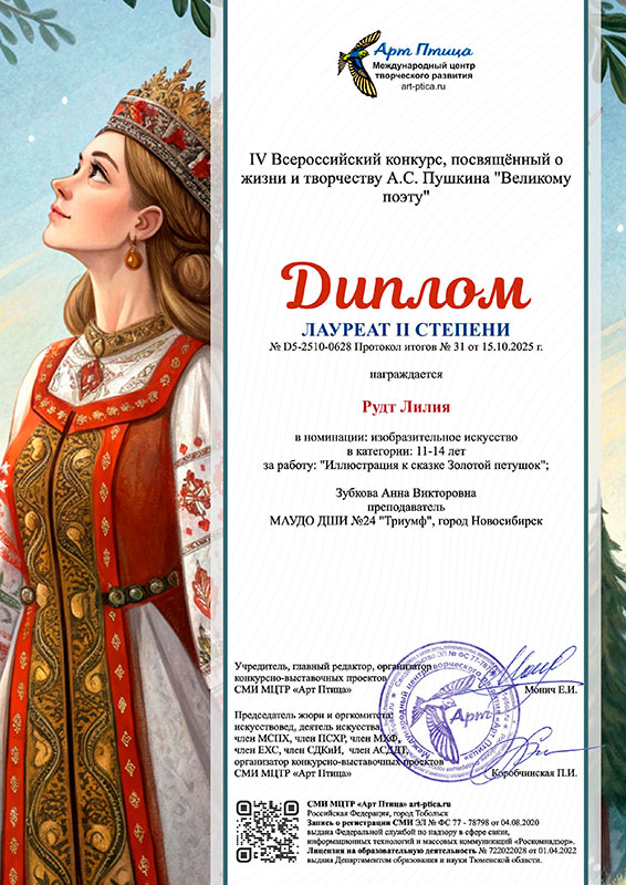 IV Всероссийский конкурс, посвящённый жизни и творчеству А.С. Пушкина «Великому поэту»