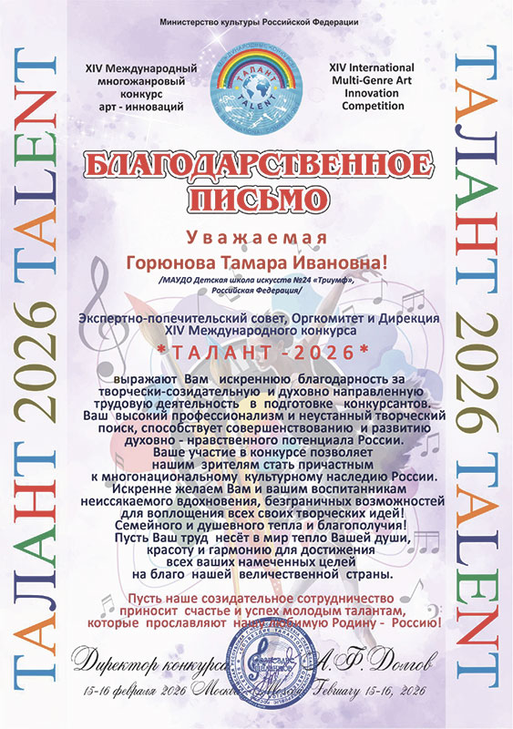 XIV Международный многожанровый конкурс арт-инноваций «Талант-2026»
