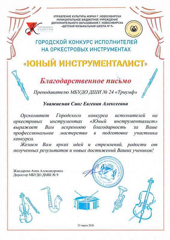Городской конкурс исполнителей на оркестровых инструментах «Юный инструменталист»