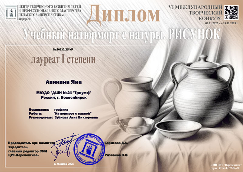 VI Международный творческий конкурс «Учебный натюрморт с натуры. Рисунок»