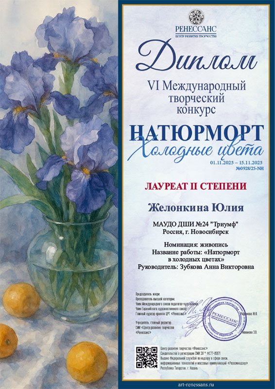 VI Международный творческий конкурс «Натюрморт. Холодные цвета»