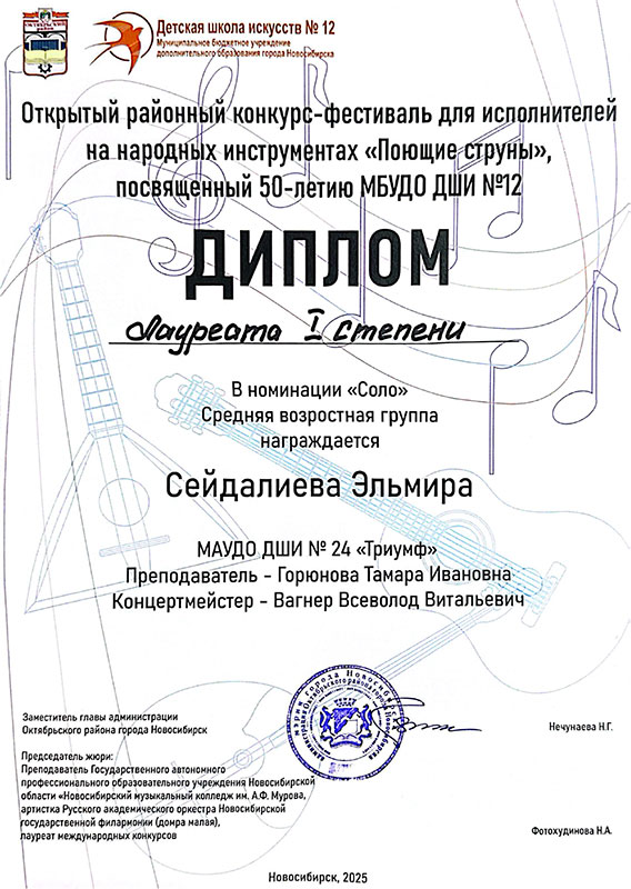 - Сейдалиева Эльмира – Диплом лауреата I степени