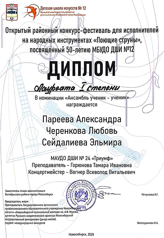 - Трио Пареева Александра, Черенкова Любовь, Сейдалиева Эльмира – Диплом лауреата I степени