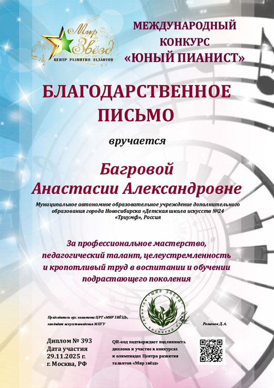 Преподаватель Багрова Анастасия Александровна