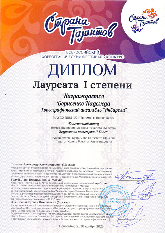 - Борисенко Надежда – Диплом лауреата I степени