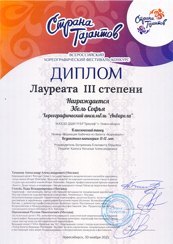 - Эбель Софья – Диплом лауреата III степени