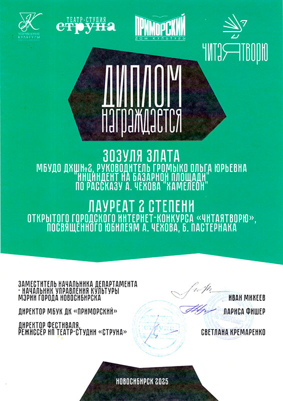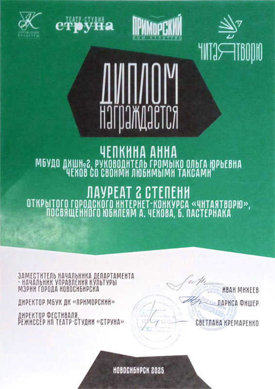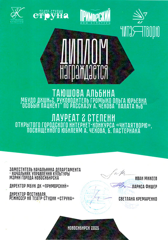 - Таюшова Альбина – Диплом лауреата 2 степени