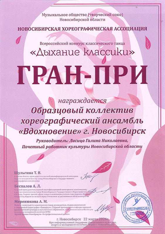 - Образцовый коллектив хореографический ансамбль «Вдохновение» – ГРАН-ПРИ