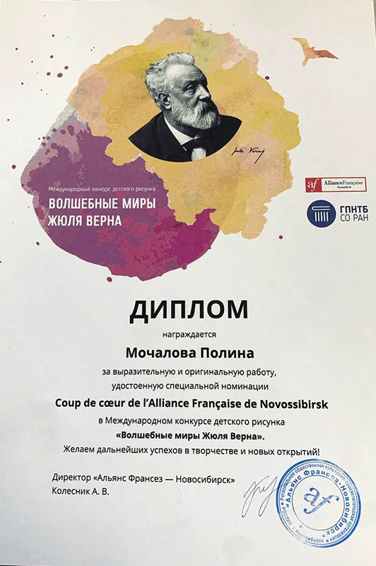 - Мочалова Полина – Диплом в специальной номинации Coup de cœur de l'Alliance Française de Novossibirsk
