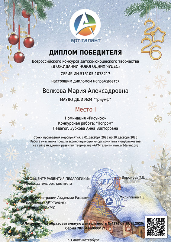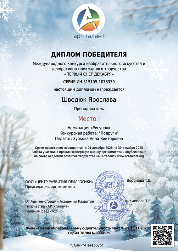 Международный конкурс изобразительного искусства и декоративно-прикладного творчества «Первый снег декабря»