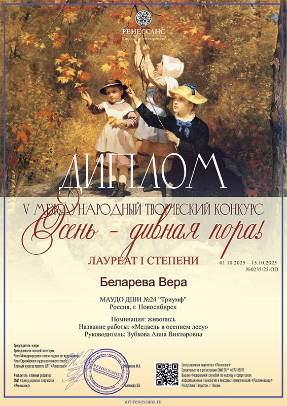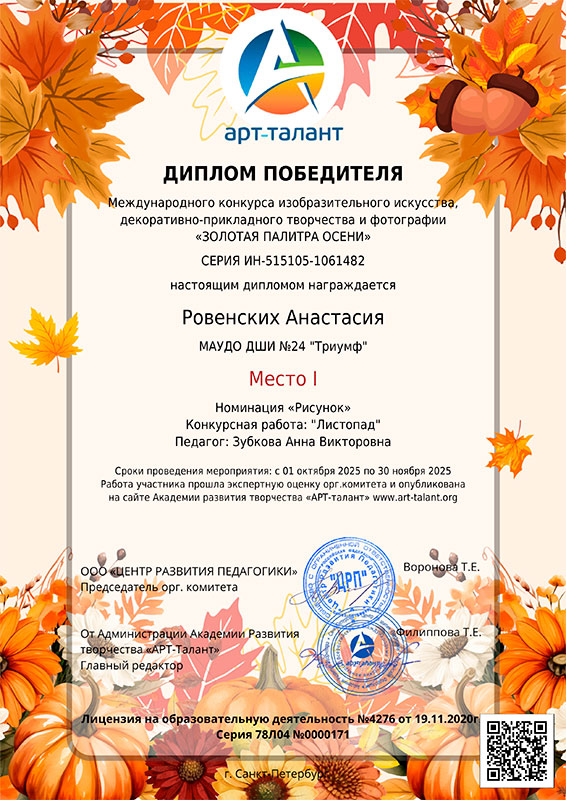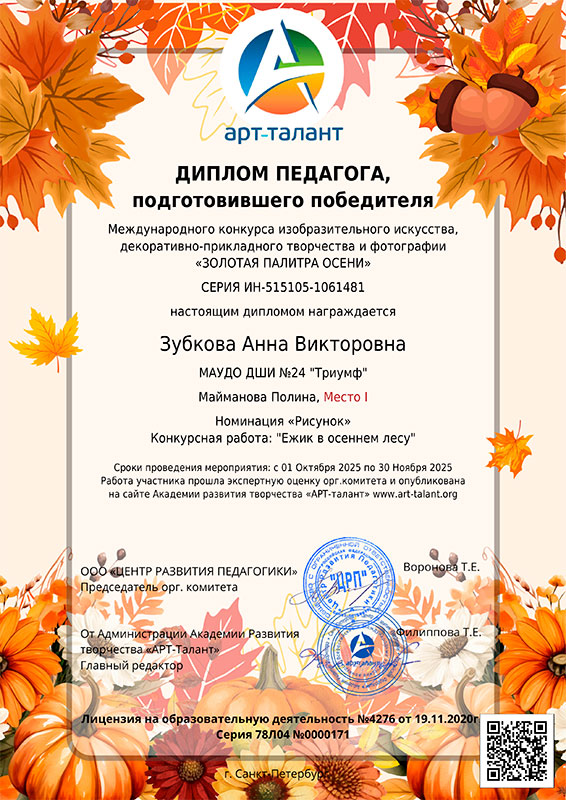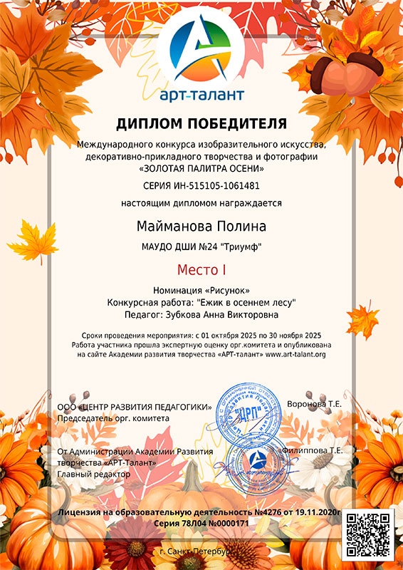 Международный конкурс изобразительного искусства, декоративно-прикладного творчества и фотографии «Золотая палитра осени»