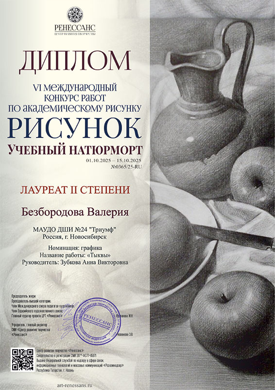 VI Международный конкурс работ по академическому рисунку «Рисунок. Учебный натюрморт»