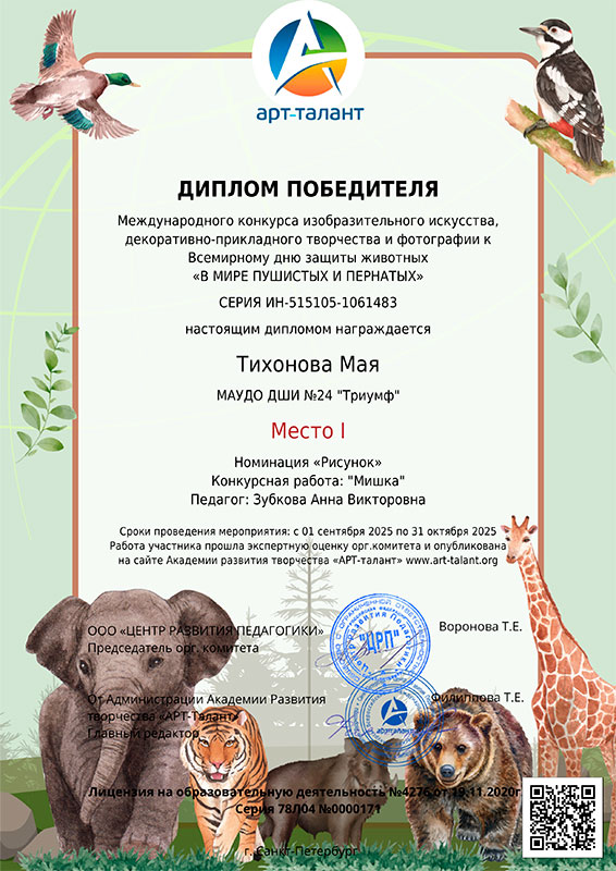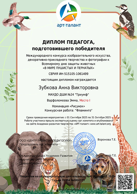 Международный конкурс изобразительного искусства, декоративно-прикладного творчества и фотографии к Всемирному дню защиты животных «В мире пушистых и пернатых»