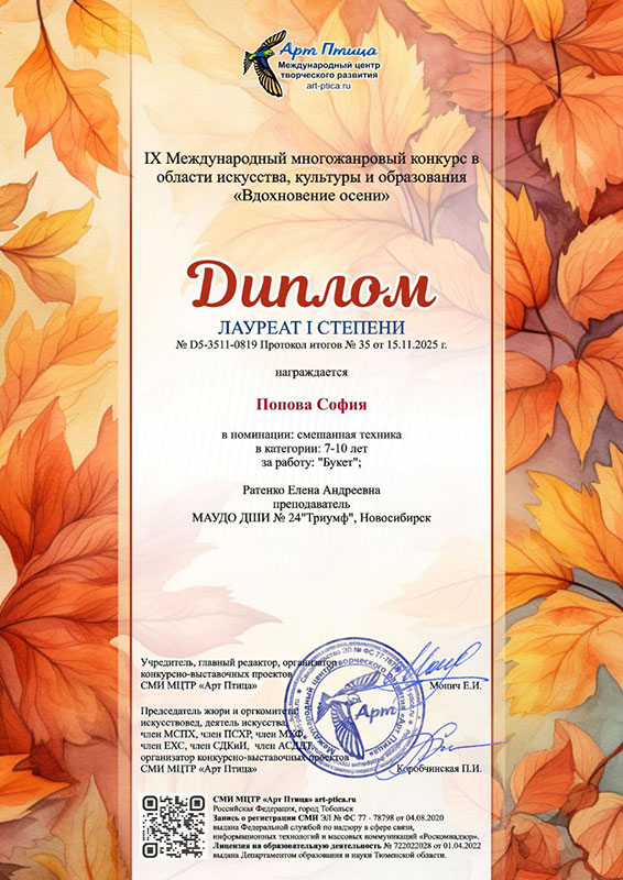 IX Международный многожанровый конкурс в области искусства, культуры и образования «Вдохновение осени»
