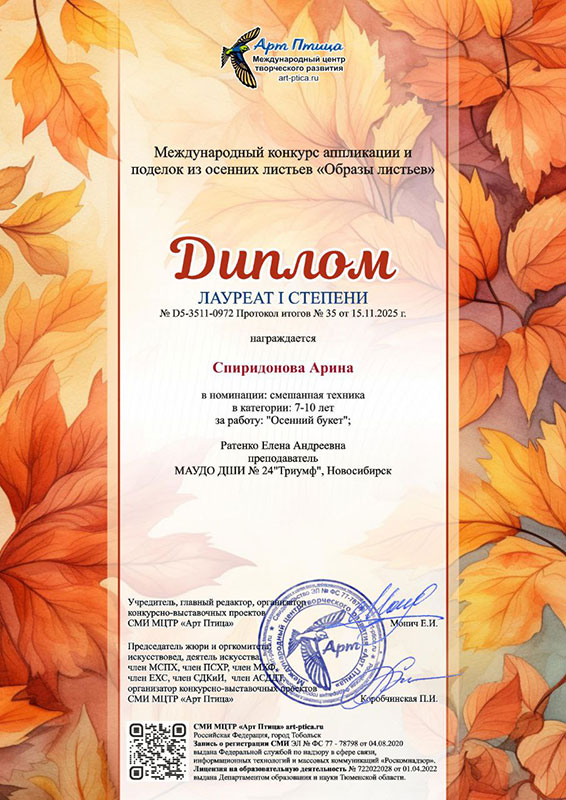 Международный конкурс аппликации и поделок из осенних листьев «Образы листьев»
