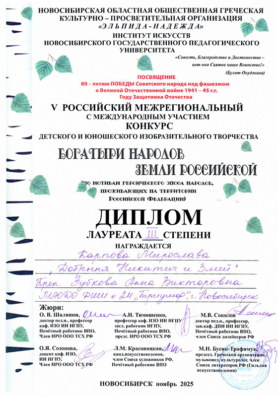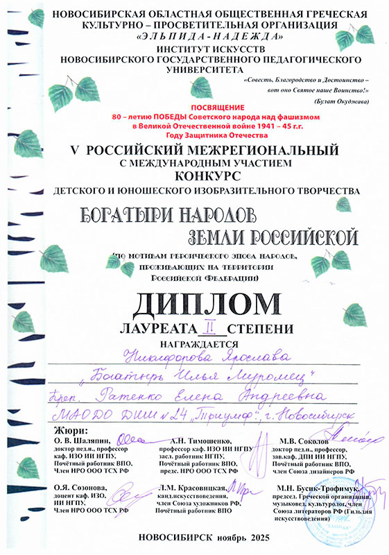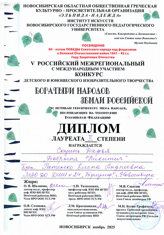 V Российский межрегиональный с международным участием конкурс детского и юношеского изобразительного творчества «Богатыри земли Российской»