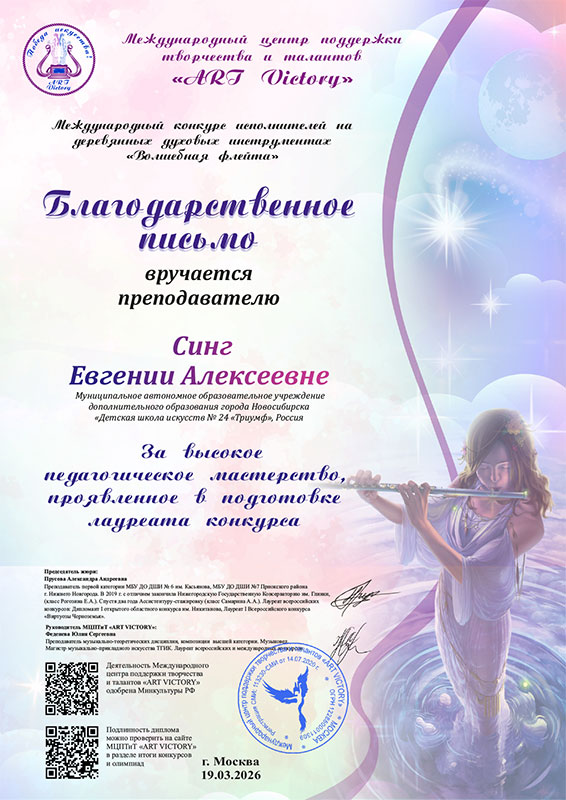 Преподаватель Синг Евгения Алексеевна,Концертмейстер Вагнер Всеволод Витальевич.