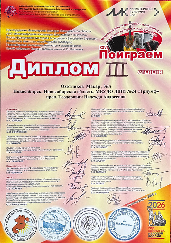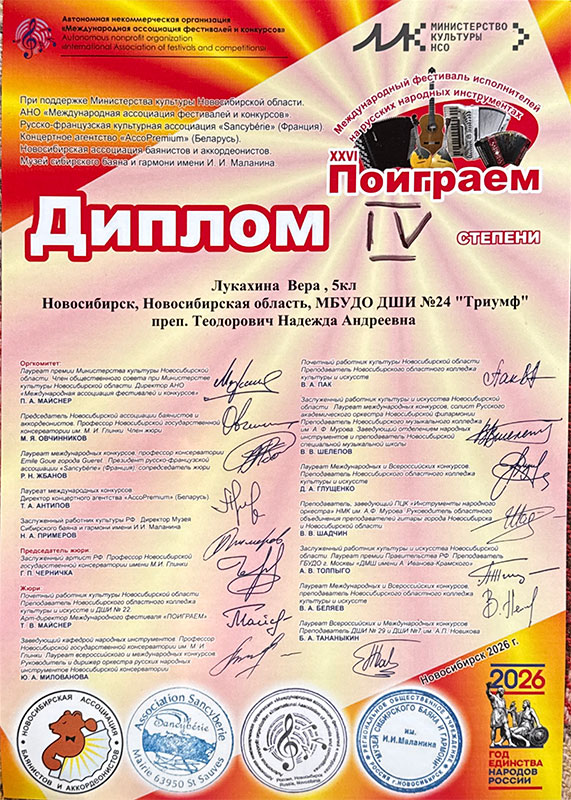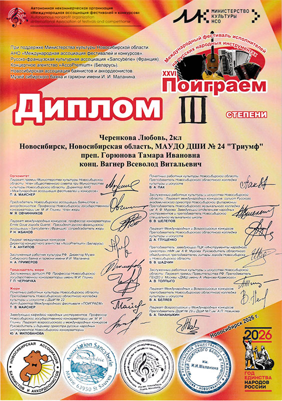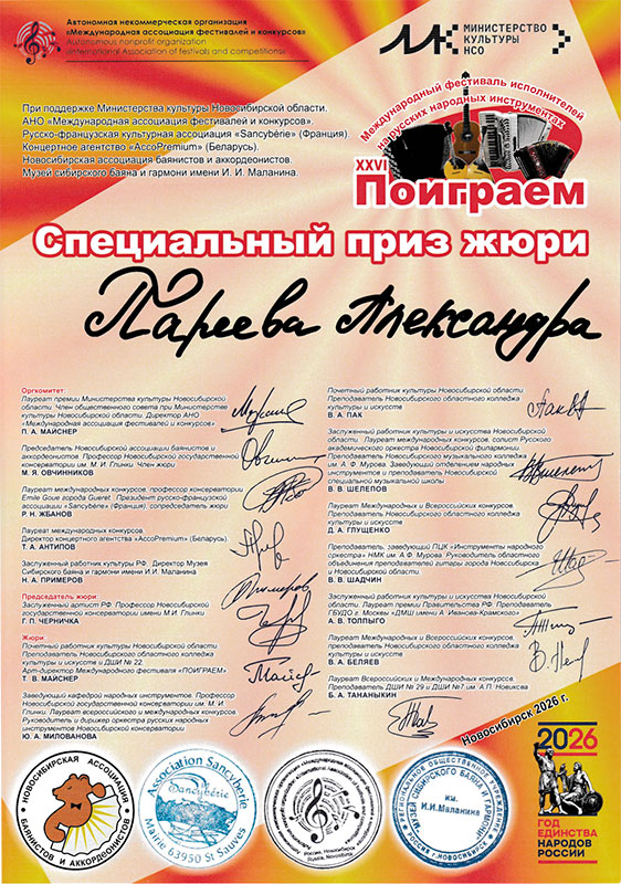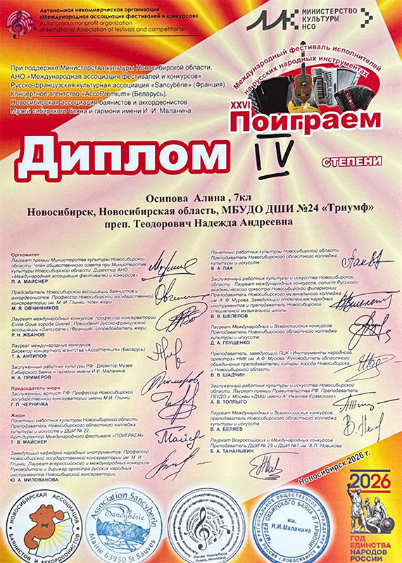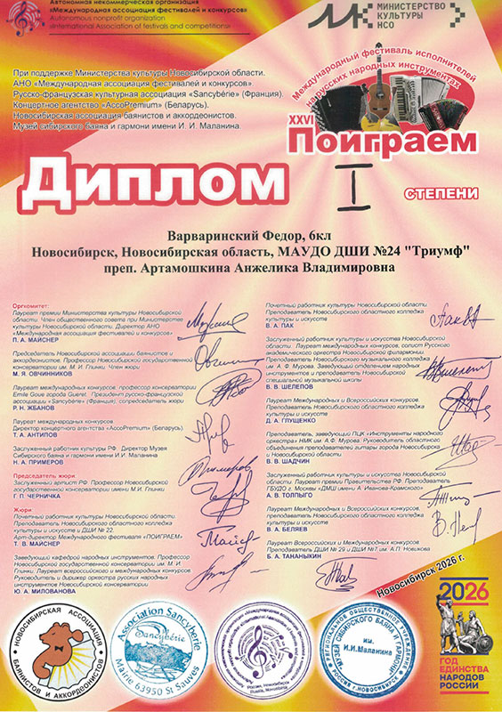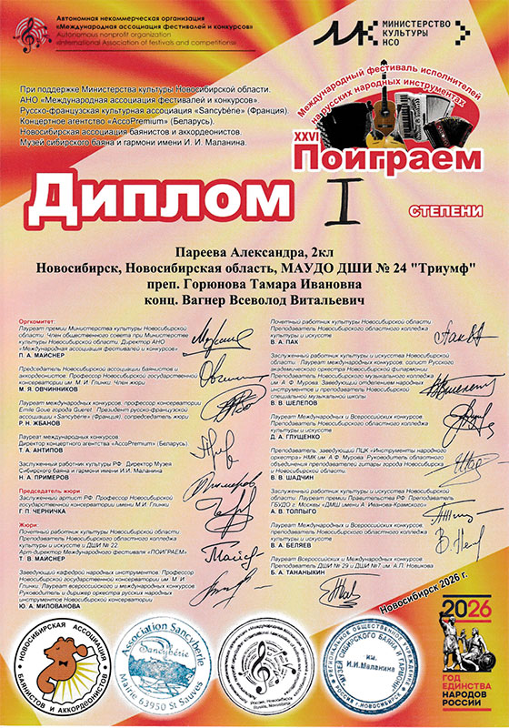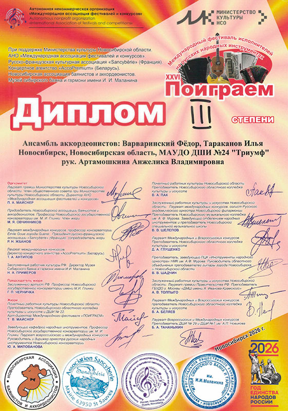 XXVI Международный фестиваль исполнителей на русских народных инструментах «Поиграем»