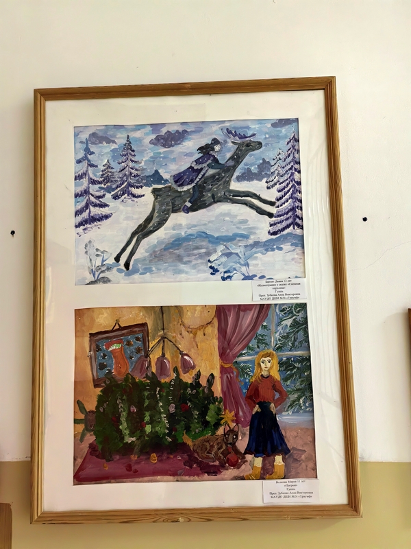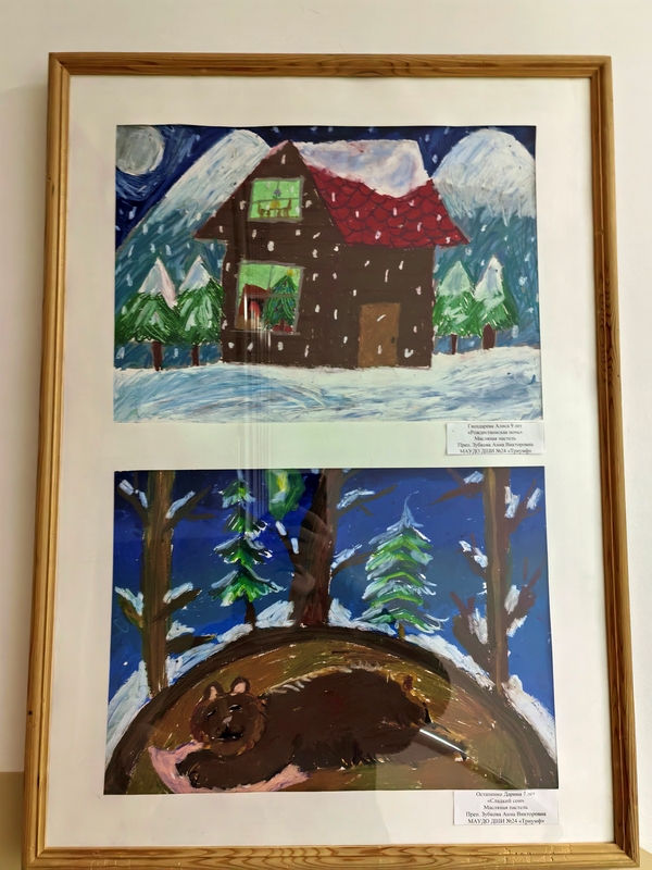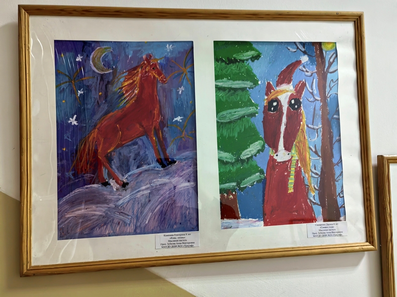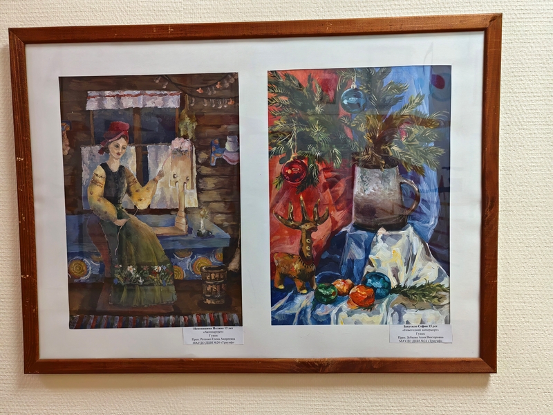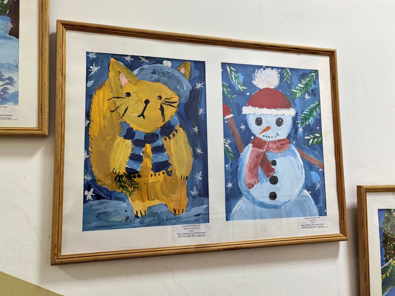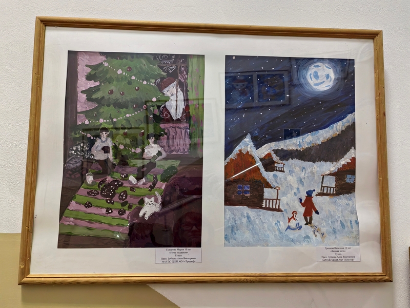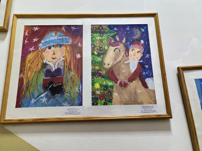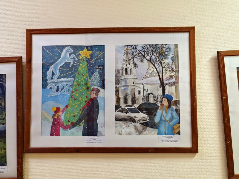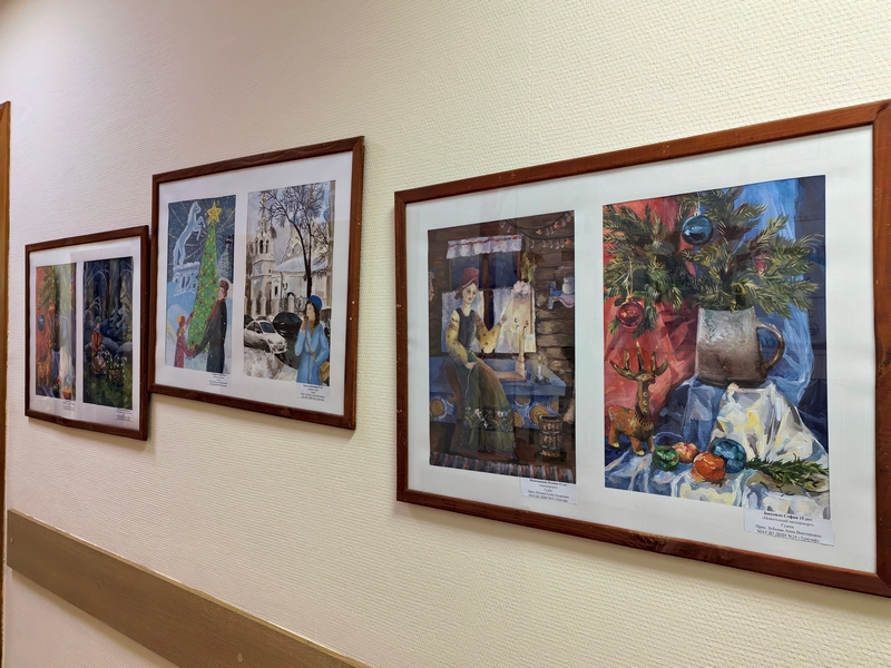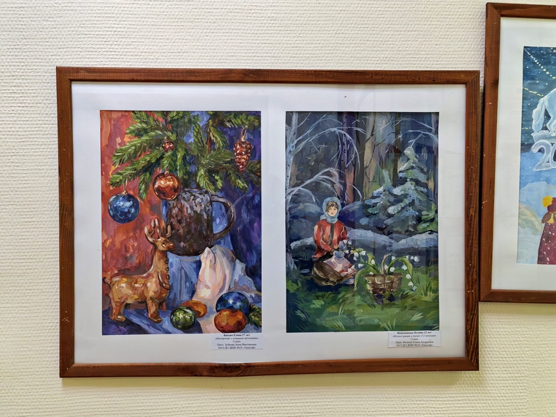 На этот раз в экспозиции представлены новогодние сюжеты, которые нарисовали обучающиеся программ «Основы ДПИ», «Основы ИЗО» и «Живопись», всех возрастов, от 6 до 17 лет.