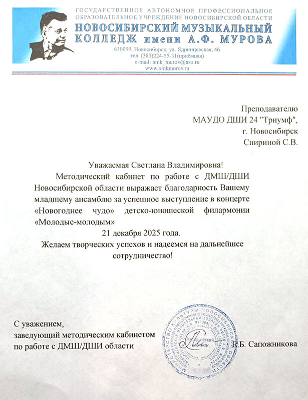 Преподаватель Спирина Светлана Владимировна, Почётный работник культуры Новосибирской области