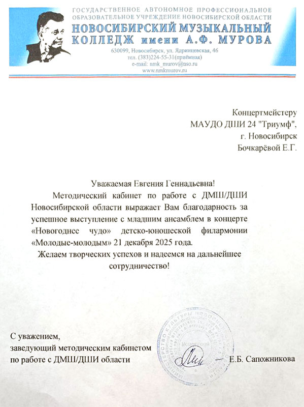 Концертмейстер Бочкарёва Евгения Геннадьевна