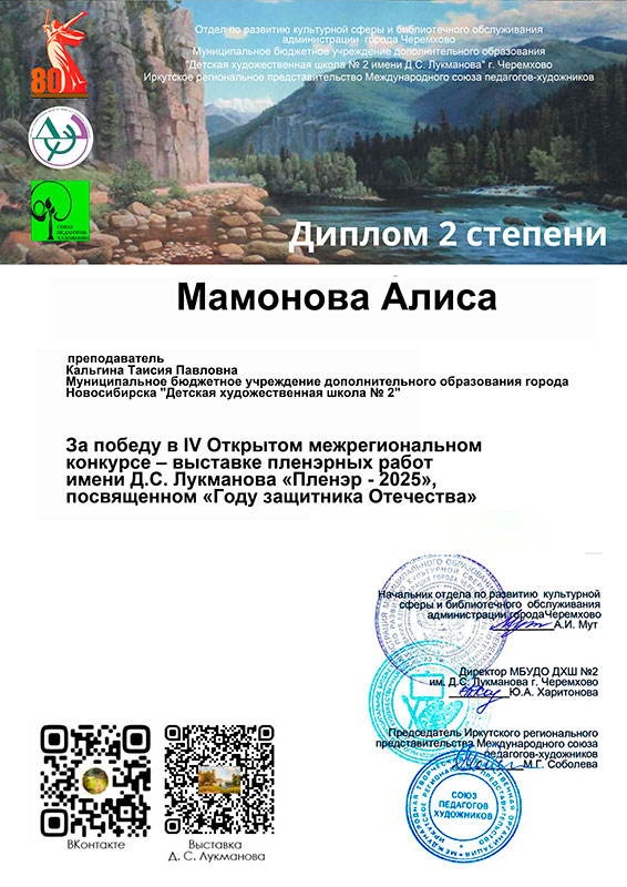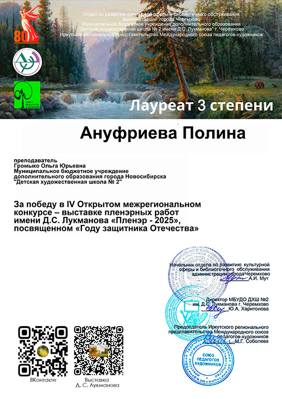 - Ануфриева Полина – Диплом лауреата 3 степени