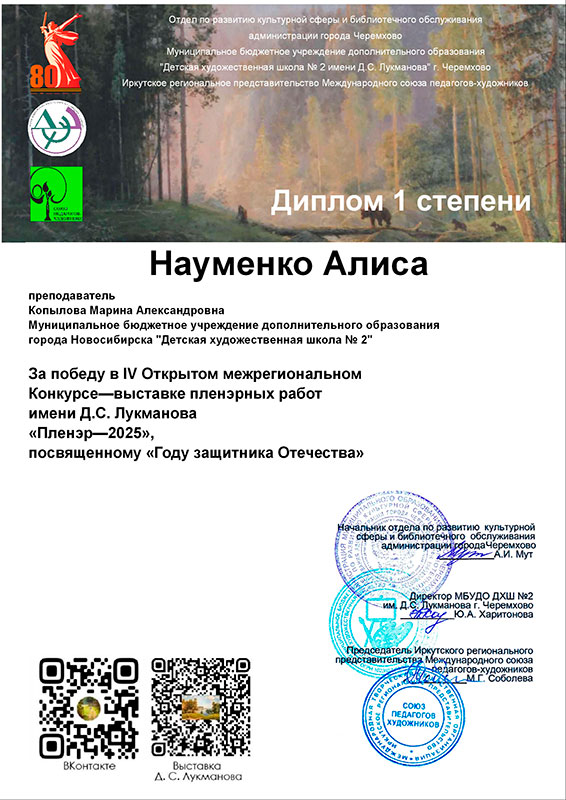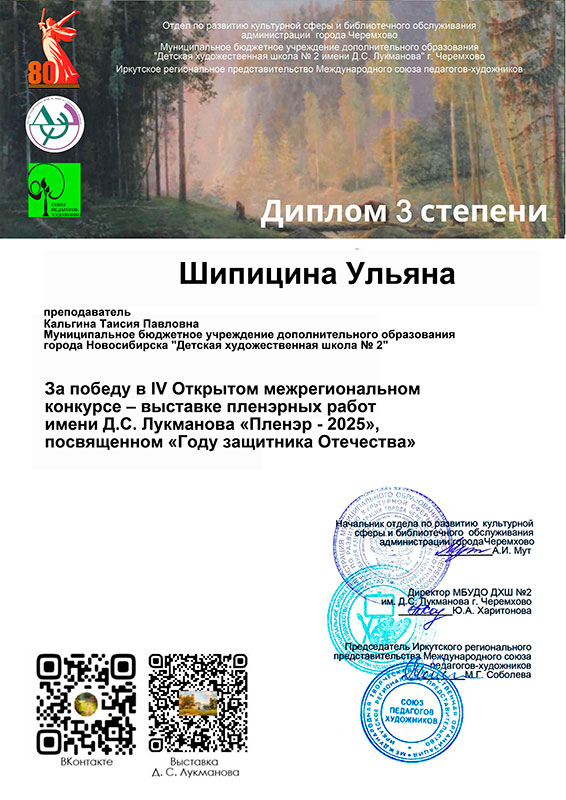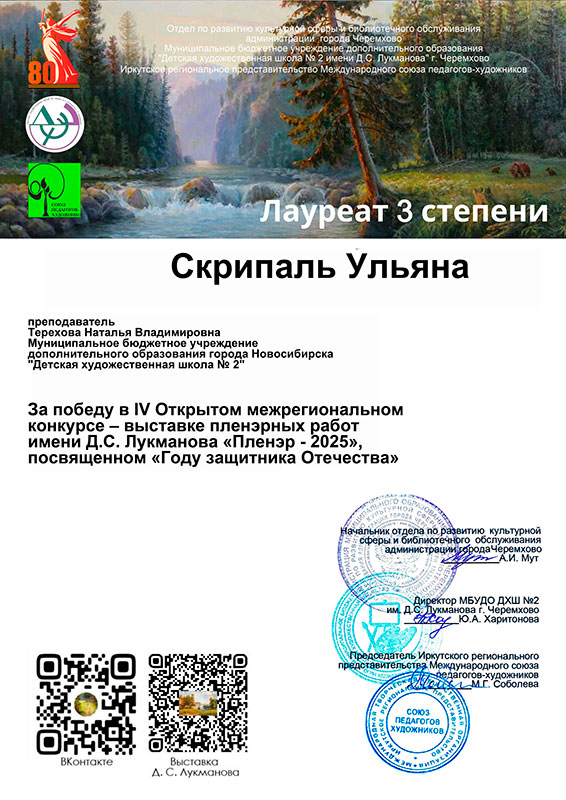 - Срипаль Ульяна – Диплом лауреата 3 степени