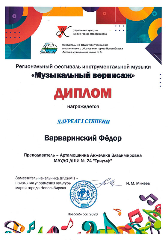 - Варваринский Федор – Диплом лауреата I степени
